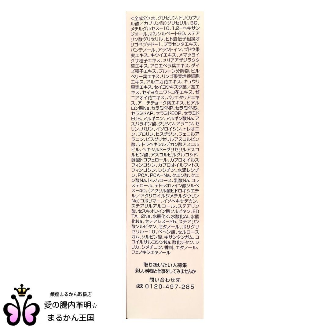 水、グリセリン、トリ(カプリル酸/カプリン酸)グリセリル、BG、メチルグルセス-10、1,2-ヘキサンジオール、ポリソルベート60、ステアリン酸グリセリル、ヒト遺伝子組換オリゴペプチド-1、プラセンタエキス、パンテノール、アラントイン、ブドウ果実エキス、キウイエキス、メマツヨイグサ種子エキス、メリアアザジラクタ葉エキス、アロエベラ葉エキス、ダイズ種子エキス、プルーン分解物、ビルベリー葉エキス、リンゴ果実培養細胞エキス、アルニカ花エキス、キュウリ果実エキス、セイヨウキズタ葉/茎エキス、セイヨウニワトコ花エキス、ゼニアオイ花エキス、パリエタリアエキス、アーチチョーク葉エキス、ヒアルロン酸Na、セラミドNP、セラミドNS、 セラミドAP、セラミドEOP、セラミドEOS、アルギニン、アルギン酸Na、アスパラギン酸、グリシン、アラニン、セリン、バリン、イソロイシン、トレオニン、プロリン、ヒスチジン、フェニルアラニン、ビスグリセリルアスコルビン酸、テトラヘキシルデカン酸アスコルビル、ヘキシル3-グリセリルアスコルビン酸、アスコルビルグルコシド、 酢酸トコフェロール、カプロオイルスフィンゴシン、カプロオイルフィトスフィンゴシン、レシチン、水添レシチン、PCA、PCA-Na、クエン酸、クエン酸Na、トレハロース、乳酸Na、コレステロール、テトラオレイン酸ソルベスー40、(アクリル酸ヒドロキシエチル/アクリロイルジメチルタウリンNa)コポリマー、イソヘキサデカン、ステアリルアルコール、ステアリン酸、セスキオレイン酸ソルビタン、EDTA-2Na、水酸化K、水酸化AI、水酸 化Na、セテアレス-25、ステアリン酸ソルビタン、セタノール、ポリグリセリル-10、ベヘン酸、セルロースガム、ソルビン酸、キサンタンガム、ココイルサルコシンNa、酸化チタン、シリカ、シメチコン、香料、エタノール、フェノキシエタノール